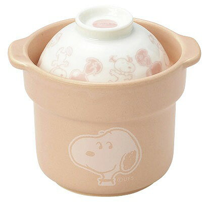 スヌーピー (SNOOPY) 1合 炊飯鍋 (ピンク) 【萬古焼 万古焼】[ごはん鍋 おひつ 茶碗 電子レンジ専用 陶器 SNOOPY 食器 飯櫃 ご飯 炊飯鍋 プレゼント ギフト]